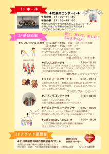 *吹奏楽コンサート 【大阪市立城陽中学校】 午前の部 11:00~11:30 午後の部 14:30~15:00 大阪市立城陽中学校吹奏楽部によるコンサート♪ 午前と午後では演奏する曲目は異なります。 ぜひ二部ともお楽しみください!! |