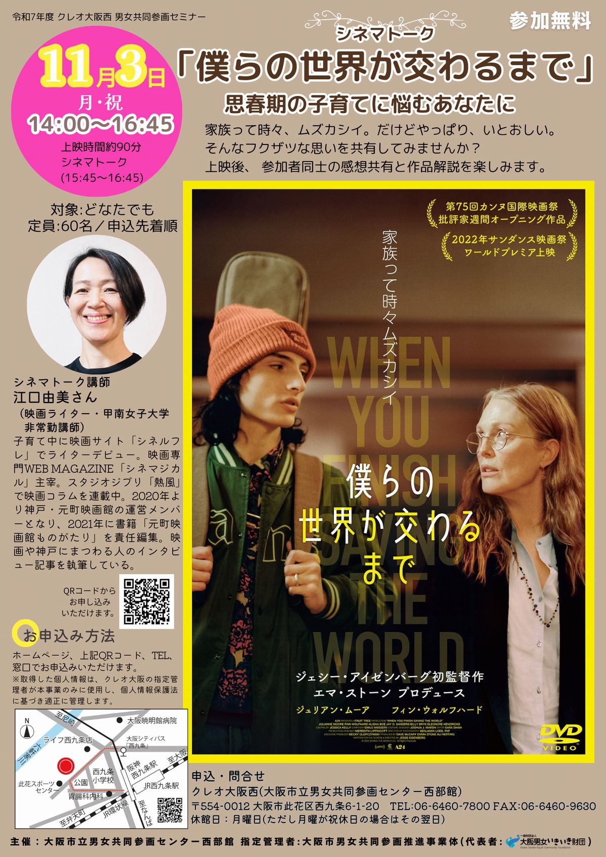 >> 11/3 シネマトーク「僕らの世界が交わるまで」思春期の子育てに悩むあなたに (男女共同参画セミナー)