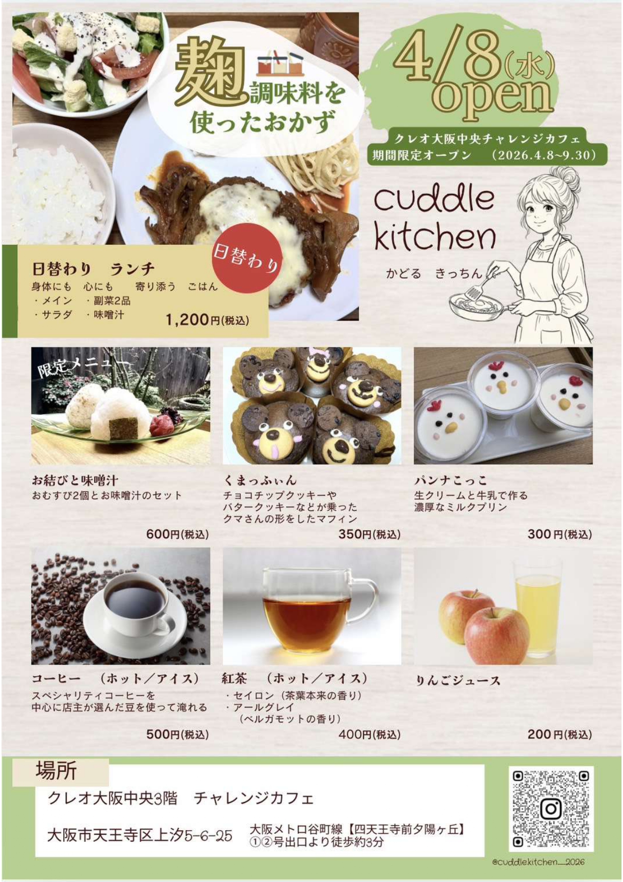 チャレンジカフェ「cuddle kitchen」4月8日(水)OPEN!